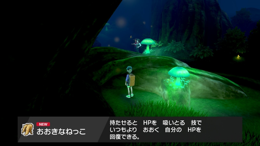 ついに出たー! くさタイプで敵の体力を奪うのが好きなオレ用のアイテム「おおきなねっこ」発見!