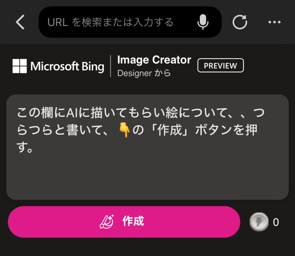 👆のImage Creatorのサイトでも良いです。