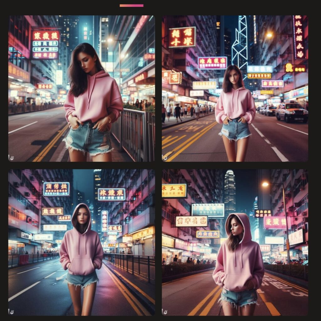 次に「香港の市街地。女の子」で作成しました。