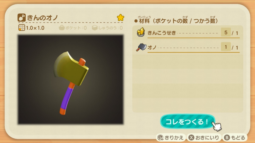 「きんのオノ」は「きんこうせき」と「オノ」で作ることが出来る様です。