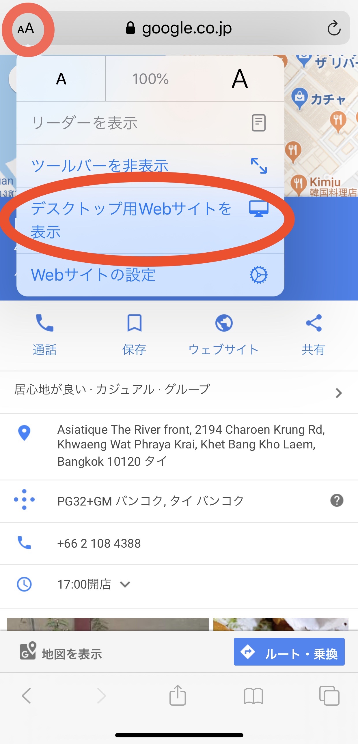 ではアプリではなくてブラウザのSafariでGoogleマップを開いて下さい。