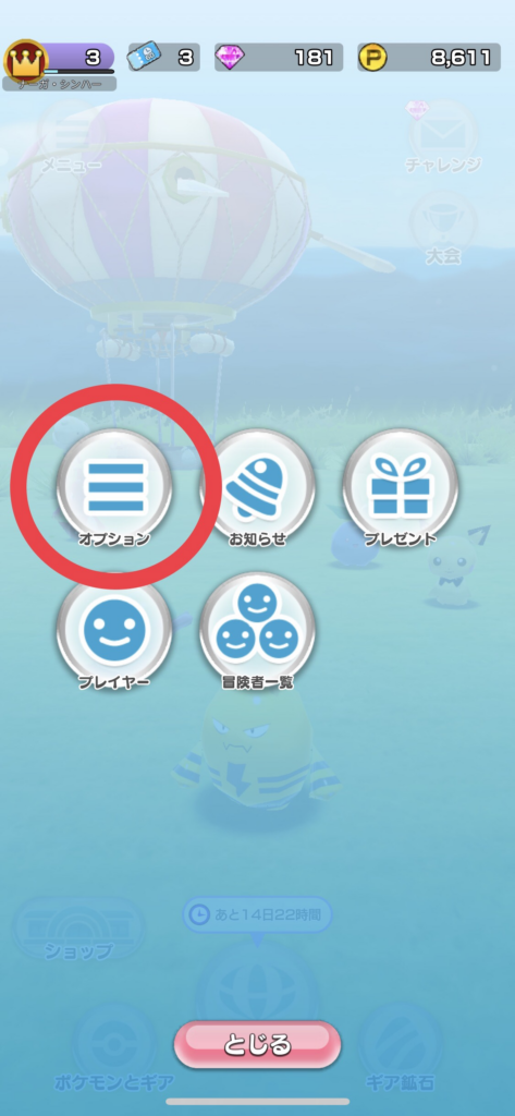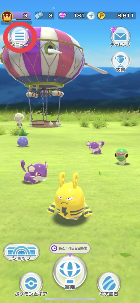 では、気球の画面の左上の「メニュー」をタップして下さい。