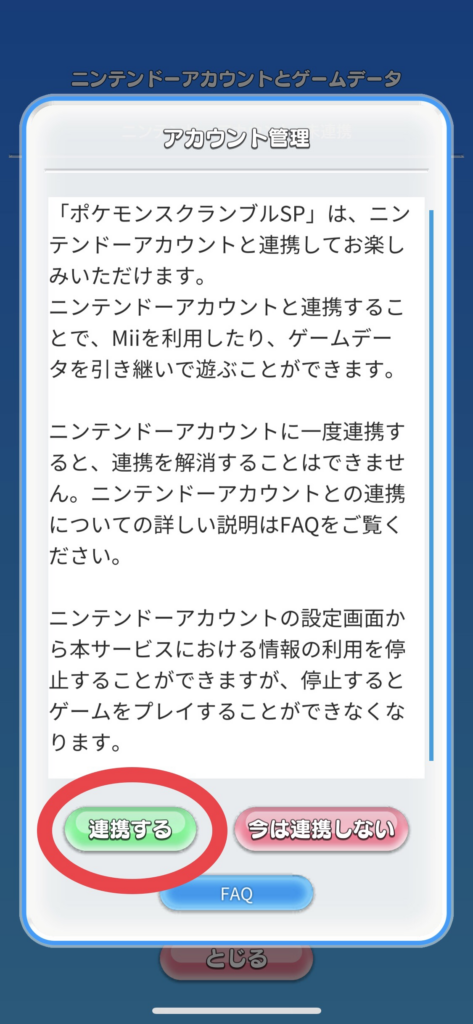 そして「ニンテンドーアカウントと連携」ボタンをタップします。