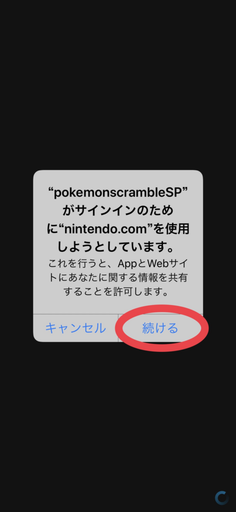 「続ける」を押して、自分のニンテンドーアカウントのMiiを選択して下さい。