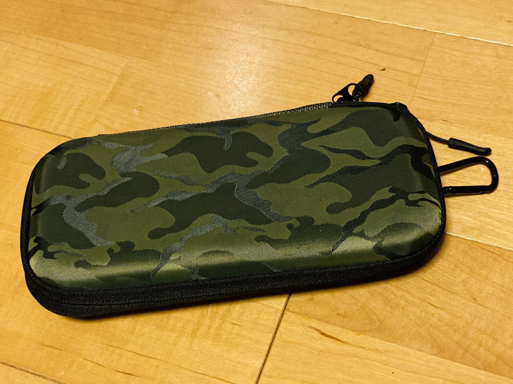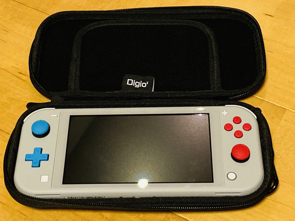 前回にかわいいニンテンドースイッチライト買ったじゃないですか。ポケモンデザインの。だからシブい大人な迷彩デザインのケースをかってカモフラージュしようと思いまして。