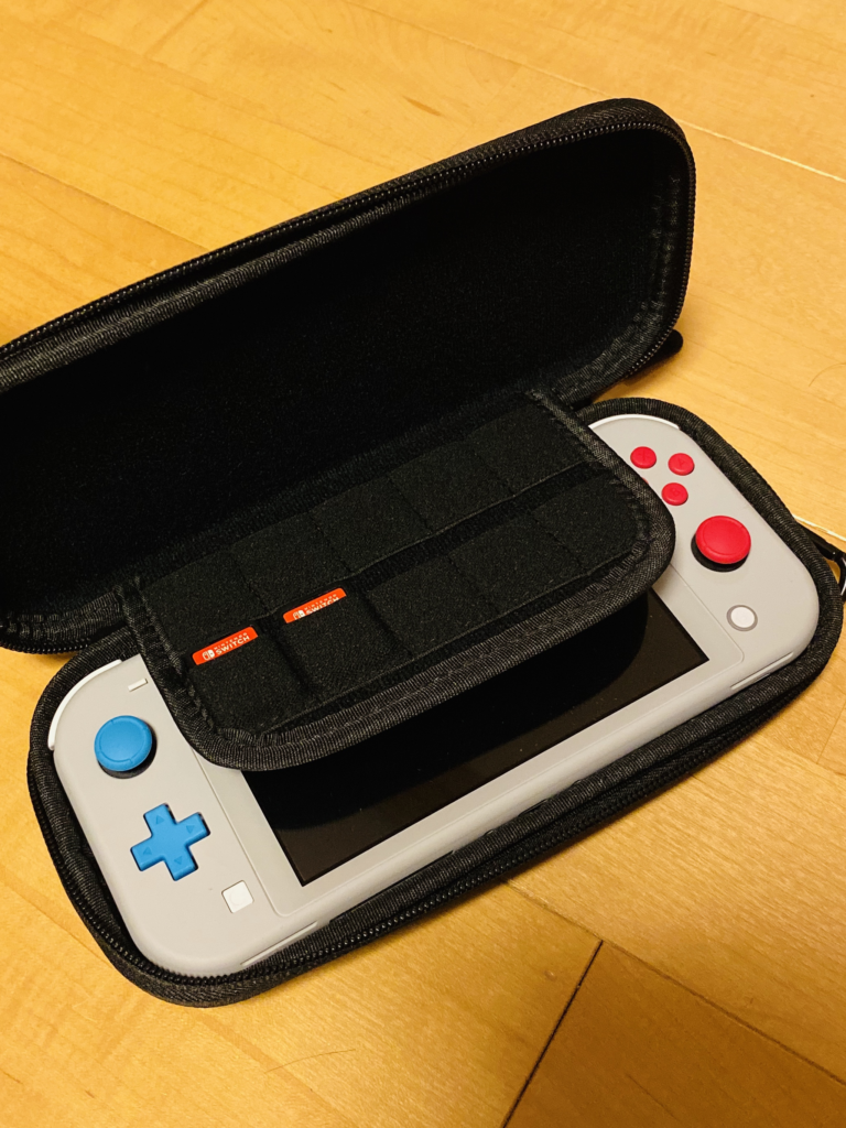 早速ニンテンドースイッチライト本体を格納しました。当たり前だけどぴったりな所が嬉しい。