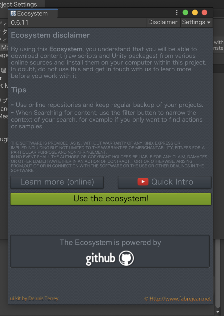 このウィンドウで「Use the ecosystem!」のボタンをクリック!