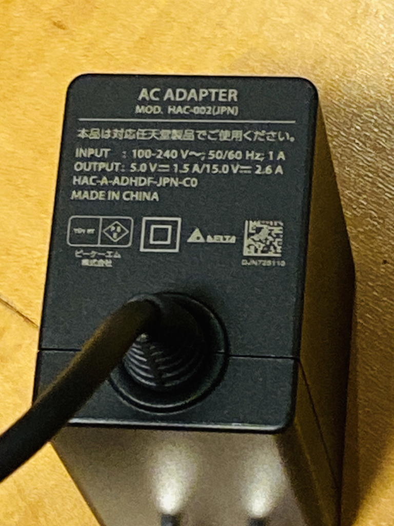 さて、旅人に一番重要なACアダプターですが、インプットが100-240Vなので、変圧器なしでそのまま海外で使えます。おめでとうございます。ニンテンドーライトは旅グッズ認定です。