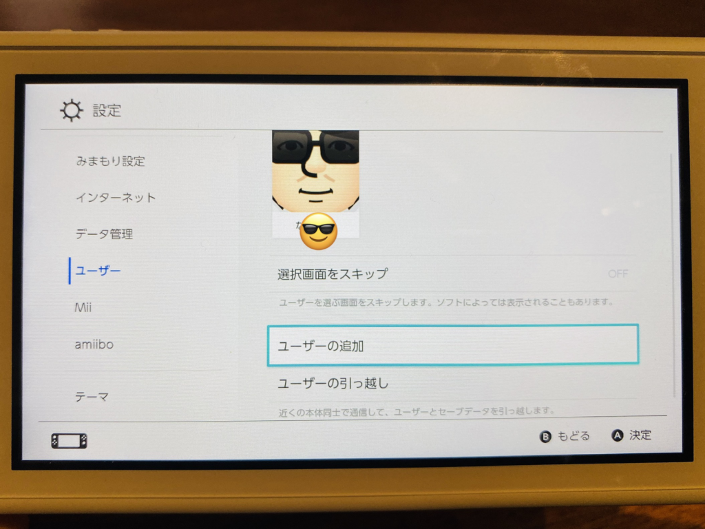 初めに起動した時は本体の更新が必要な為、ニンテンドーアカウント連携が出来ず、新規にユーザーを作る必要があります。後で消すので適当なユーザーを作ります。