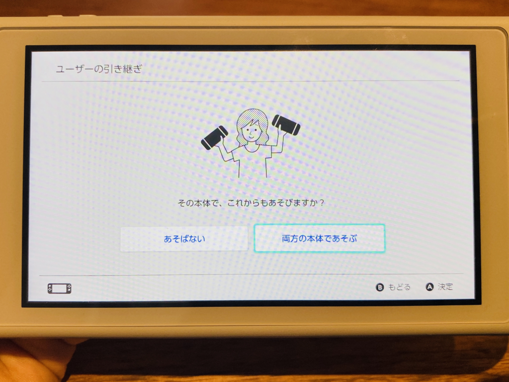 うちの場合は両方のスイッチで遊びたいので「両方の本体であそぶ」を選択。