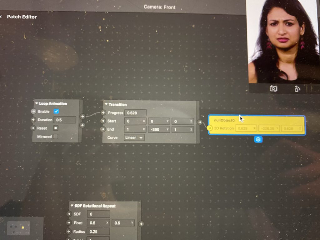 先ずはSpark ARのパッチで、頭の上で回転し続ける装置を作ります。