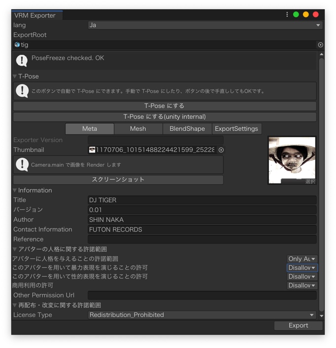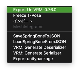 準備が出来たら、自キャラを選択してExport UniVRMします。