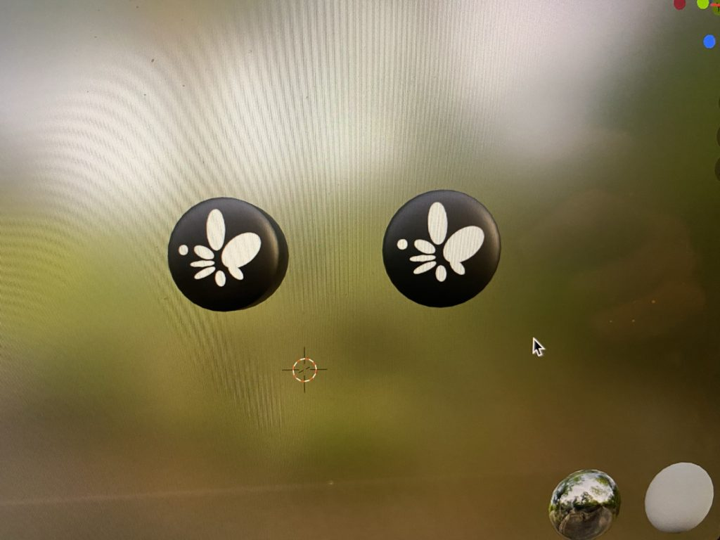 金属のような目はポリゴンで立体的に作りたいので、Blenderの作業です。