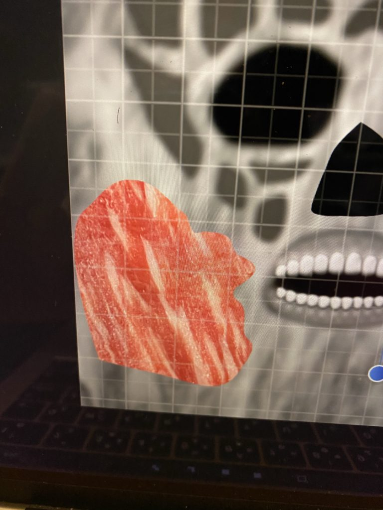 顔の模様には、いつぞやに食べたエイジングビーフの塊肉300gを貼りますね。