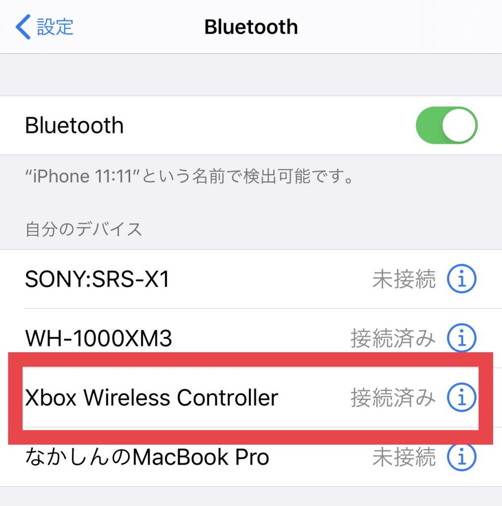 iPhoneのBluetoothにXbox wireless controllerが現れるので、接続して下さい。